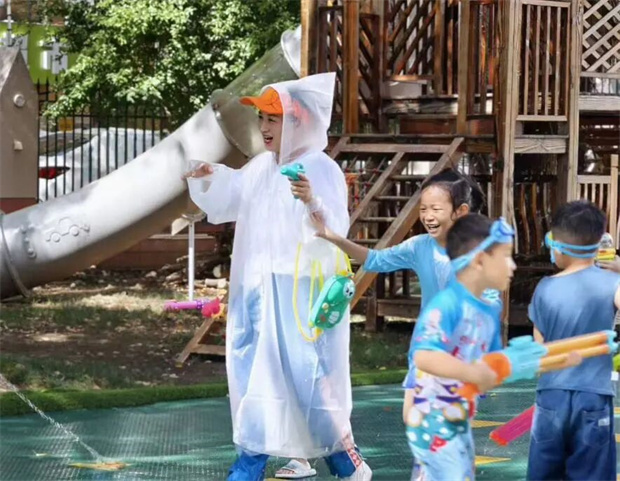 操场上总是洋溢着蓬勃的朝气。运动时间,孩子们像一群欢快的小鹿,在彩虹滑梯上、绿色草坪间雀跃玩闹。大班的跳绳小达人们则展示着花样技巧,绳子划出优美的弧线。趣味玩水时,托小班孩子小心翼翼地用海绵运水,中大班小朋友进行着激烈而不失礼貌的水枪派对,每个孩子都沉浸在清凉的快乐之中。
