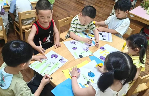 艺术的气息弥漫在每个教室。音乐律动时,孩子们随着节奏拍手跺脚,用身体感受音乐的韵律;;童画工坊里,小画家们用画笔描绘心中的夏日景象:湛蓝的游泳池、红彤彤的西瓜、绽放的向日葵,每一幅画作都是孩子们眼中的世界;电影派对日,孩子们自己制作票根,布置“放映厅”,在观影中感受不同艺术形式的魅力。