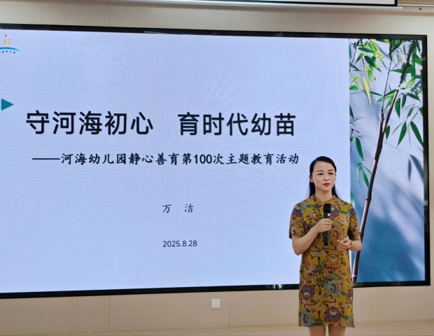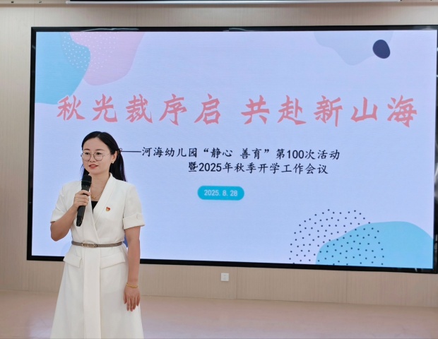 8月28日上午,河海幼儿园开展“静心·善育”第100次活动暨2025年秋季开学工作会议,活动共“开篇引入、收获分享、恪守承诺、未来擘画”四项议程,由何洪秀、张烨阳主持。