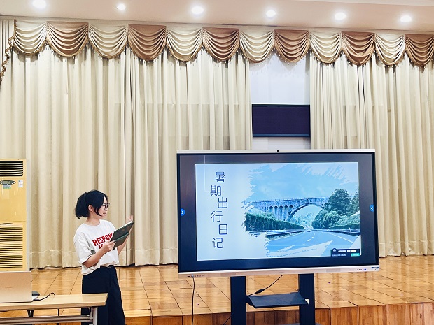 夏天的故事里,藏着成长的印记与温暖的回响。“夏日·拾光集趣”环节中,高菁昀、黄静潇两位老师通过照片集、短视频生动地讲述了夏日旅途中的精彩瞬间。这些分享不仅展现了老师们丰富多彩的生活面貌,更体现了幼儿园团队积极向上、热爱生活的精神风貌。现场笑声阵阵,氛围温馨而融洽。