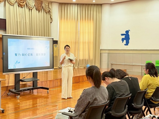 会议最后,殷美玉园长聚焦“收心归位、踏实进取、目标明确”三个核心关键词,强调了全体教职工从暑期状态切换至工作模式,收心归位投入保教工作;要秉持踏实作风,深耕课程优化、幼儿照护等细节,避免浮躁;此外,园长还针对教师发展明确具体目标,要求教师围绕“提升课堂教学质量”“加强家园沟通效能”两大方向发力,为新学期幼儿园教育教学工作筑牢基础。