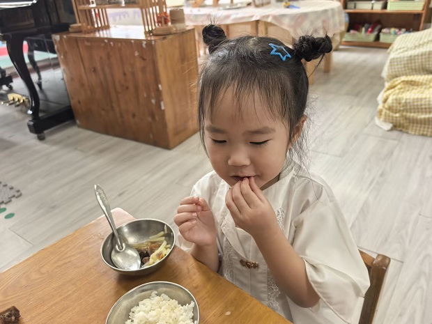 托育部星星班的宝贝开启了全新的生活,眼里满满的新奇。萌娃们虽是第一次踏进班级,但在老师的带领下能愉快地玩耍、游戏、生活。入园后进开始学着自己吃饭、自己睡觉。
