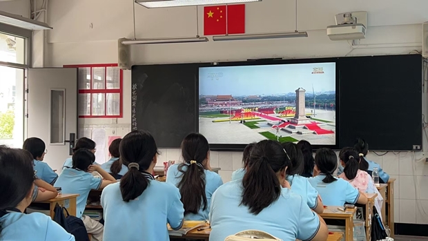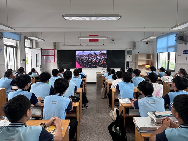 当历史影像在屏幕上静静铺展,唤醒那段烽火岁月的记忆;当受阅方队迈着整齐的步伐踏过长安街,尽显今日中国的昂扬姿态。每一个画面都牵动着师生的情思,先烈们舍生取义的壮举、为国奉献的精神似在眼前鲜活重现,爱国主义的信念在每个人心中愈发坚定,如明灯般照亮心田。