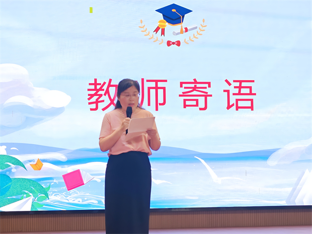 曹宣校长的致辞,是淬炼智慧的燧石。他回顾学子们成长的足迹,赞扬奋斗的精神,更以深情的目光展望他们未来的征程。“无论走多远,母校的目光永远追随;无论飞多高,赤子的情怀永不褪色。”字字句句,饱含期许与祝福,浸润着在场每一位学子的心田。教师代表张伟英老师的寄语,则充满了慈爱与不舍,那些共度的晨昏、解过的难题、分享的欢笑,化作最温暖的临别赠言,台下不少师生眼眶微湿。