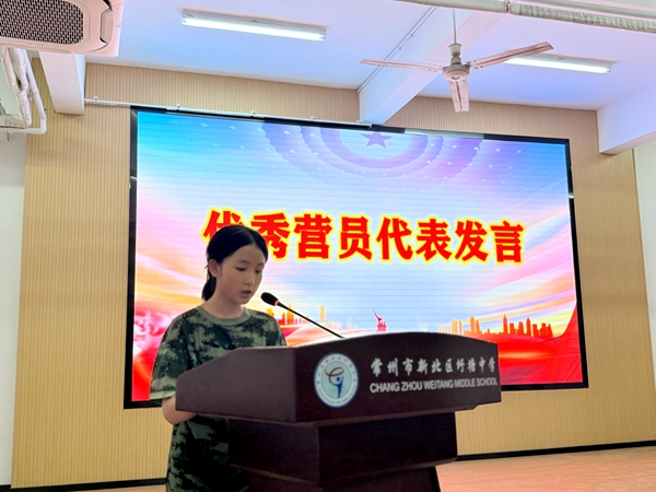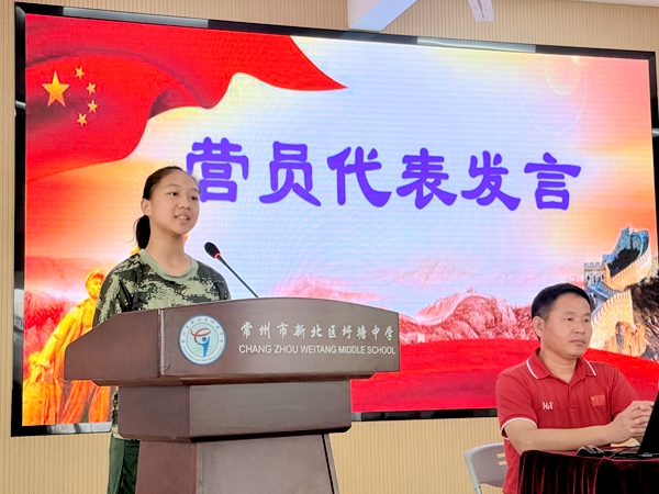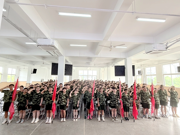 新生代表韩欣怡在发言中承诺,全体同学将以军人标准严守纪律、刻苦训练、团结互助,用“流血流汗不流泪”的意志淬炼青春,把训练成果转化为终身受益的习惯与作风,为三年初中生活写下昂扬序章。