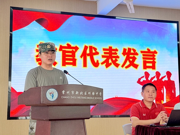 教官代表吴教官强调:“在接下来的3天里,我们将以军人的标准严格要求大家,从站军姿、走队列,到纪律规范,每一个环节都将是你们突破自我的见证。也许烈日会灼伤皮肤,汗水会浸透衣衫,但请记住:所有的坚持都会化作成长的勋章,所有的付出都将照亮未来的路。愿大家以昂扬的斗志、饱满的热情,交出一份无愧于青春的答卷。”