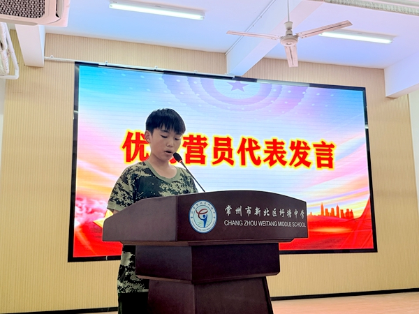 随后,七年级两位同学作为新生代表发言,分享这三天的点滴感悟。他们的声音清澈而坚定,字里行间流露着对接下来在圩中学习生活的美好向往。那些训练场上的汗水、同伴间的鼓励、老师们的关怀,都将化作成长路上最动人的音符,奏响第一曲青春的乐章。