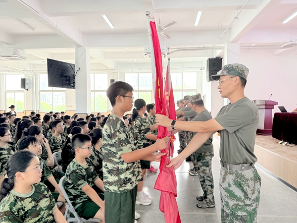 教官们向各班庄重授旗,各班代表郑重接过旗帜。一面面迎风飘扬的旗帜,不仅是集体的象征,更是生命活力与团队精神的传递。