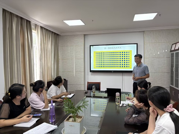 接着,张老师带领大家剖析常见情绪问题,引导教师正确认识和处理情绪,并介绍了“场景化情绪急救包”。通过具体案例,演示如何在工作中遇到问题时保持冷静、运用技巧化解矛盾。随后,他又分享了冥想、培养兴趣爱好等缓解情绪的小妙招,疏解教师们的不良情绪,为日常工作注入积极能量。