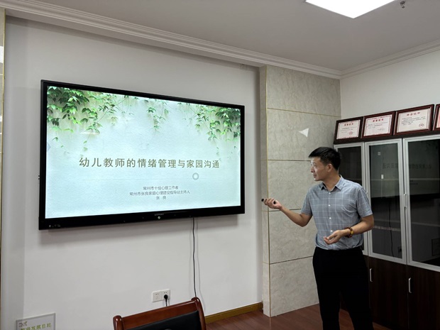 为关爱教师心理健康,提升教师情绪管理与家园沟通能力,营造更加温暖、积极、有活力的育人环境。2025年9月18日中午,常州市十佳心理工作者张良专家受邀来园,开展“幼儿教师的情绪管理与家园沟通”专题讲座。