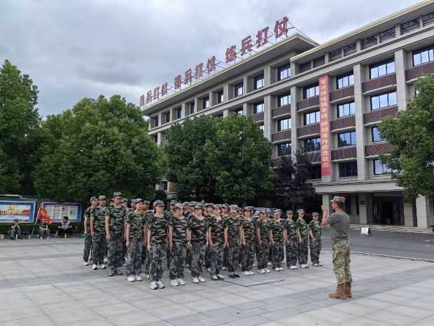 一声哨响划破训练场的燥热,迷绿军装瞬间涌动。学生们以连为单位小跑集结,队列保持着纪律性依次入场。午后阳光为挺拔的军姿镀上金边,"稍息!立正!敬礼!"的口令在薄雾中回响,站军姿、踢正步、练转体,每一个动作都凝聚着专注与坚持。随着阳光逐渐炽烈,汗水顺着少年的脸颊滑落,浸透了衣领,但没有人擦拭。