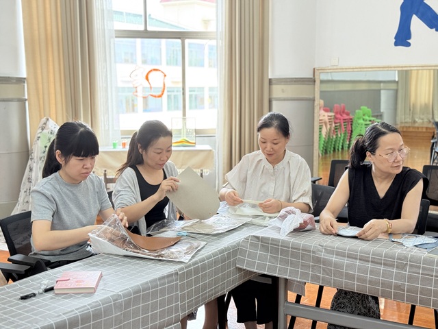 幼儿园特别策划的手作环节温馨开启。教师们亲手制作专属小包,将教育情怀与节日祝福融入一针一线。活动现场,五彩斑斓的布料、精致的装饰配件整齐摆放,教师们化身“巧手匠人”,现场洋溢着欢声笑语和创意灵感。
