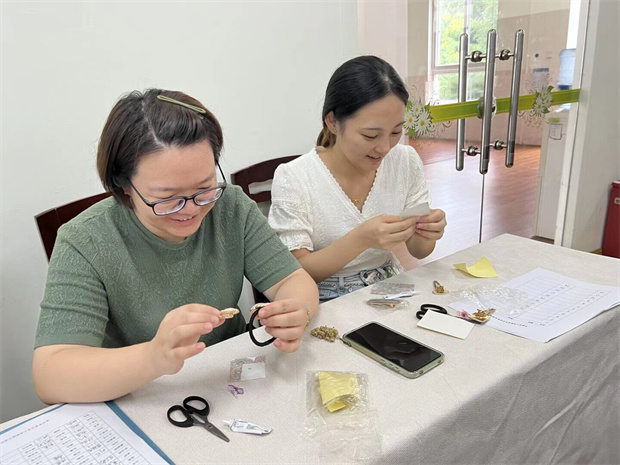 活动分为两个环节。在宋锦制作体验环节,孟成老师为大家讲解并演示了宋锦“通经断纬”的独特织造技艺,指导教师们动手完成简易宋锦纹样的编织,深刻感受非物质文化遗产的精湛魅力。随后的知识抢答环节围绕宋锦历史、工艺特点及教师节文化知识展开,现场气氛热烈,教师们踊跃参与,在巩固学习成果的同时也增强了团队的凝聚力。