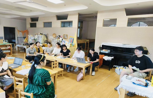 小班组将户外资源与课程联动,设计泡泡器制作、沙包闯关、趣味跳跃等活动,提出”先体验后探索” 实施路径,如先玩泡泡器再自主尝试制作等。西苑中班组围绕自然资源利用、民间游戏等,如沙包游戏、一米菜园、光影游戏等展开了详细的方案交流,明确了与课程融合,场地材料需优化等问题;南苑中班组聚焦优化课程方案,中1班围绕滚铁环、桂花资源调整难度;中3班创新“炒黄豆”游戏加入追逐赛与等级挑战模式;中4班针对轮胎梯子组合的游戏提出融入综合游戏,解决仅发展单一技能的问题。西苑大班组明确户外大课堂“沉浸式学习”的属性,区分其与常规户外混龄活动的差异,如艺术森林写生、飞行器制作等方案突出户外活动的不可代替性。南苑大班组梳理骑骑乐广场、足球场、天井等场地的自然资源与器械资源,明确木工区制作木制玩具、轮胎山开展投壶游戏、攀爬区训练攀爬技能等活动方向,强调“一资源多玩法”与 “多技能的融合”。各教研组立足幼儿发展需求,从自然资源、八大技能、民间游戏三类资源切入,形成差异化研讨重点与实践方向。