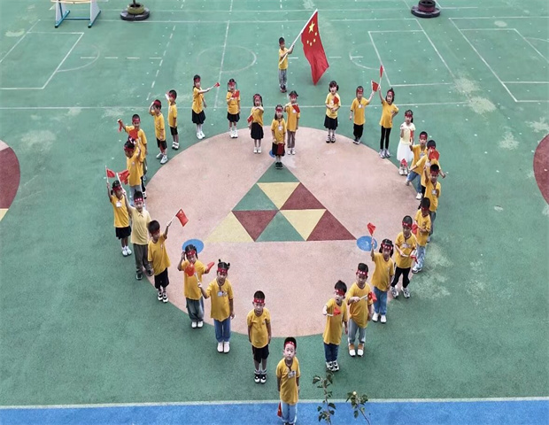 活动现场,《祖国祖国我爱你》《大中国》《我爱北京天安门》《童心向党》《红星闪闪》……等一首首经典红歌接连唱响。孩子们用稚嫩却真挚的歌声,传递着对祖国的热爱与祝福;幼儿园的户外场地被五彩装饰点缀得格外喜庆,处处洋溢着浓浓的节日氛围。