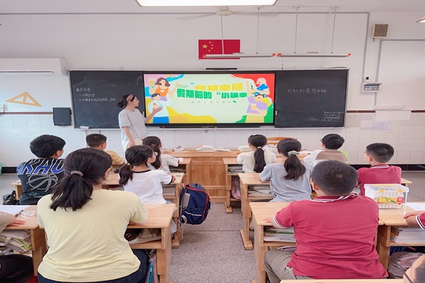 活动伊始,张艺雯老师以“幸福快问快答”开启热身环节。“一想到国庆长假,脑海里最先蹦出来的三个词是什么?”问题刚落,“旅游”“吃大餐”“睡懒觉”等充满期待的答案接连响起,老师将关键词写在黑板上,顺势引入“预期幸福”:“原来光是‘想到’假期就这么开心!大脑里藏着‘幸福放大器’,等待好事时最活跃,今天我们就当‘幸福侦探’,揭开这份甜蜜秘密。”