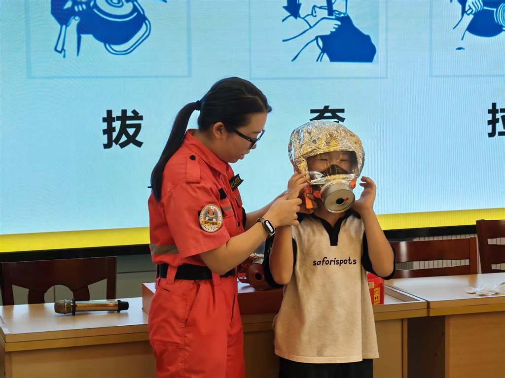 安全讲师强调:“安全教育需从细节入手。例如防烟面罩的正确佩戴、安全出口的快速识别,都是危急时刻保命的关键。”孩子们在模拟场景中亲身体验,不仅掌握了理论知识,更锻炼了应急反应能力。
