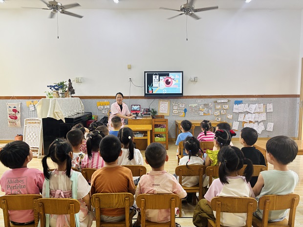 各班开展的护眼小课堂上,教师通过生动形象的画面,为孩子们揭开“眼睛的秘密”,趣味讲解正确的读写姿势、合理控制电子产品使用时间、充分利户外运动“锻炼”眼睛等实用知识。随后,孩子们在传唱朗朗上口的护眼儿歌中,进一步巩固护眼常识,牢记健康用眼之道。