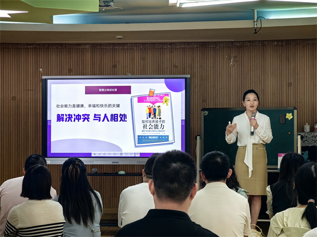 随后,特邀专家——新北区图书馆阅读推广人、资深家庭教育指导师徐帆老师与朱莉老师,为家委们带来了极具实践指导意义的主题沙龙《如何培养孩子的社会能力》。徐帆老师结合丰富案例,深入浅出地讲解了如何通过有效沟通与情境引导,培养幼儿的情绪管理、人际交往等关键能力。沙龙现场互动频频,气氛热烈,家长们或凝神倾听,或踊跃提问。家长们纷纷表示收获颇丰,为他们在家庭场景中科学育儿提供了清晰路径和有力指导。