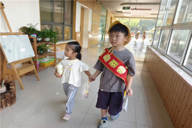 ★“大带小活动”传递暖意:大班孩子化身“小小引导员”,带领弟弟妹妹入园,陪他们找教室,帮他们擦眼泪、拿物品,用温暖的陪伴拉近弟弟妹妹与幼儿园的距离。