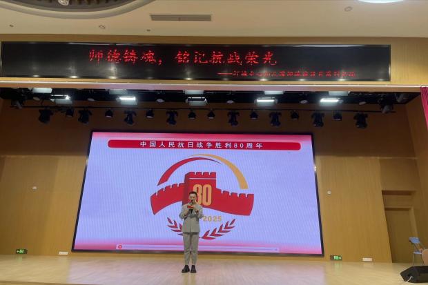 活动在肃穆庄重的氛围中拉开帷幕。主持人王额老师首先清晰阐述活动背景与核心目的,强调抗战胜利80周年的时代意义,引导在场人员深切感知纪念历史、传承精神的重要性。随后共同观看抗战主题短片,悠扬激昂的红色歌曲片段萦绕现场,泛黄的历史画面与震撼的英雄事迹交织,瞬间将大家带入对革命先烈的深切缅怀之中,为整场活动奠定厚重的情感基调。
