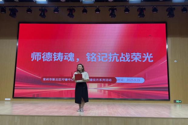 为传承伟大抗战精神,进一步筑牢教师队伍师德根基,在抗战胜利80周年的特殊节点,9月30日常州市新北区圩塘中心幼儿园以“师德铸魂,铭记抗战荣光”为主题,开展师德建设月系列活动。