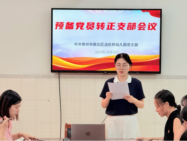 金秋十月,党旗高扬,为深入学习贯彻党的创新理论,巩固拓展主题教育成果,进一步强化党员理想信念、锤炼党性修养、激发担当精神,常州市新北区汤庄桥幼儿园党支部精心策划、统筹推进10月党建主题活动。本次活动以“理论武装+红色教育+自我剖析+组织建设”为核心脉络,先后开展书记党课、《长津湖》观影交流、党性分析会及预备党员转正系列活动,通过多维度、沉浸式的党建实践,引导全体党员在学思践悟中筑牢信仰之基,在知行合一中践行初心使命,为汤幼党支部高质量发展凝聚起强大的红色动力。
