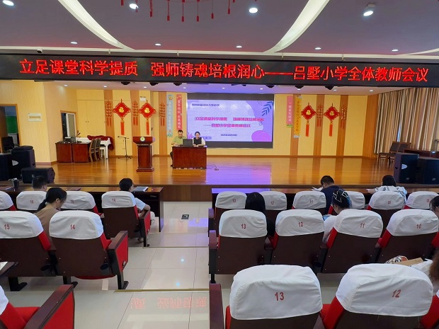 2025年10月10日,新北区吕墅小学召开全体教师会议,会议由谢双红副校长主持。本次会议围绕教育教学质量提升、学生常规管理、心理健康教育及师德师风建设四大主题展开,分为四个环节进行深入交流与部署。