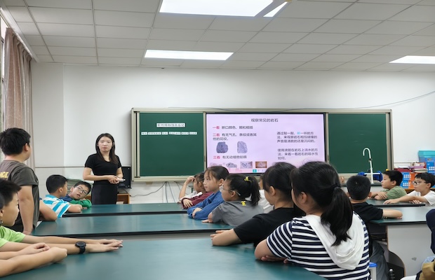 接着程英老师执教的《常见岩石》以常州博物馆的岩石谜题创设情境,引导学生从形状、触感、花纹等多方面分析岩石。教学中结合实验,让学生通过敲击听声、观察条纹、测试吸水性等操作探究岩石特征,同时利用记录表对4块标本进行多维度观察。最后通过岩石鉴定成果发布会,让学生分享探究结果,还拓展了生活中岩石的种类及标本采集制作知识。整个设计注重学生动手实践与知识应用,将科学探究与生活实际结合,有效提升学生的科学探究能力与素养。