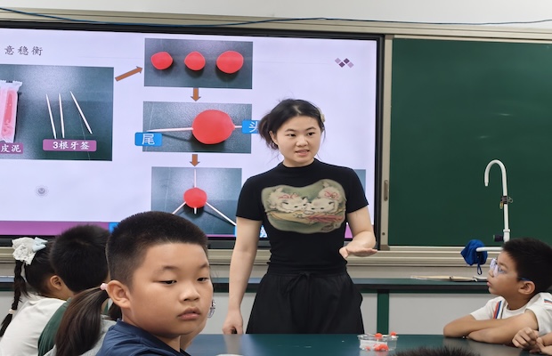 首先由刘帅老师执教的《探秘平衡鸟》一课,围绕平衡鸟展开趣味教学。课堂上,老师先引导学生尝试让平衡鸟平衡、观察其结构,再通过演示讲解平衡点、重心等概念,揭示物体平衡原理。随后的实践环节,学生用纸质鸟、曲别针等材料调试平衡,还以橡皮泥、牙签创作简易平衡装置。最后,老师借不倒翁拓展,说明平衡原理在生活中的应用,并布置用身边材料制作不同平衡鸟的课后作业,让学生在动手与思考中探索。