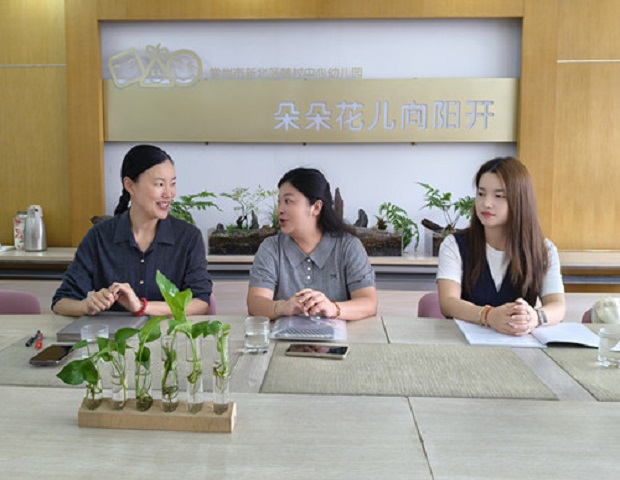 在陈华芳园长的热情陪同下,陈主任一行漫步于幼儿园的户外场地:诗情画意般的花园长廊、充满野趣的沙水区、硕果累累的石榴果园、生机勃勃的种植园地……每一处角落都体现了“以幼儿为本”的教育理念。陈主任对幼儿园巧妙利用空间,为孩子们创设如此开放、自然、富有探索性的成长环境给予了高度评价。