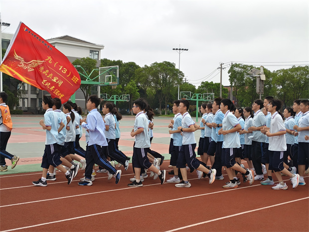 从开学至今一个多月的每一次出操练习,到如今跑操展示的圆满落幕,我亲眼见证了我们从参差不齐到步履铿锵的蜕变。我身为队伍中的一员,全力呼喊口号,牢牢踏准节奏,看着前方那面印着班级和口号的醒目的班旗,听着整个九年级方阵如雷霆过境般的脚步声,我忽然明白,备战中考的漫漫长路,需要的正是这种“每一步都脚踏实地,每一天都坚持不懈”的态度,这整齐划一的第一步,我们走好了,接下来的路,我们更有信心!