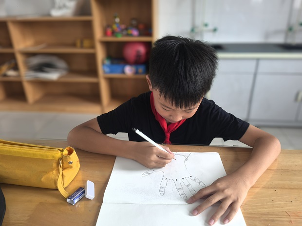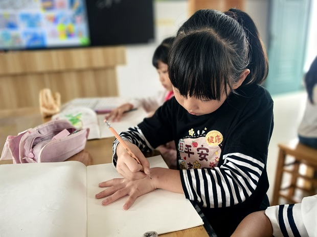 最受期待的“绘手创作”环节到来时,学生们早已跃跃欲试。他们拿起画笔,有的认真勾勒自己手的轮廓,细致描绘指节纹路;有的发挥想象,将手变成“大树的枝丫”“小鸟的翅膀”;还有的为画中的手搭配了鲜艳的色彩和趣味背景,每一幅作品都充满童真与巧思。创作结束后,教师采用“学生自评+同伴互评+教师点评”的方式,邀请学生分享自己的创作思路,“我画的是妈妈的手,因为妈妈的手会给我做饭”“他把手指画成了彩虹,特别好看”,在轻松的点评交流中,学生们学会欣赏他人作品,也进一步明晰了创作中的优点与改进方向。
