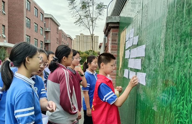 10月17日,三号楼西侧,每当有身穿红马甲的志愿者往围墙上贴公告时,总能吸引来许多同学的围观;
