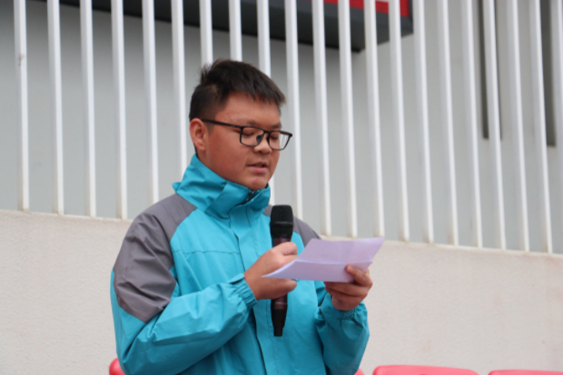 在国旗下讲话环节,九(8)班史东明同学以《铭记英烈志,担当正当时》为题发表演讲。他深情回顾革命先烈的英勇事迹,强调“英烈们用生命换来了今天的阳光”,呼吁同学们珍惜当下、勇担使命。真挚的语言、动人的讲述,引发全场共鸣,不少同学为之动容,深刻体会到青春与责任的意义。