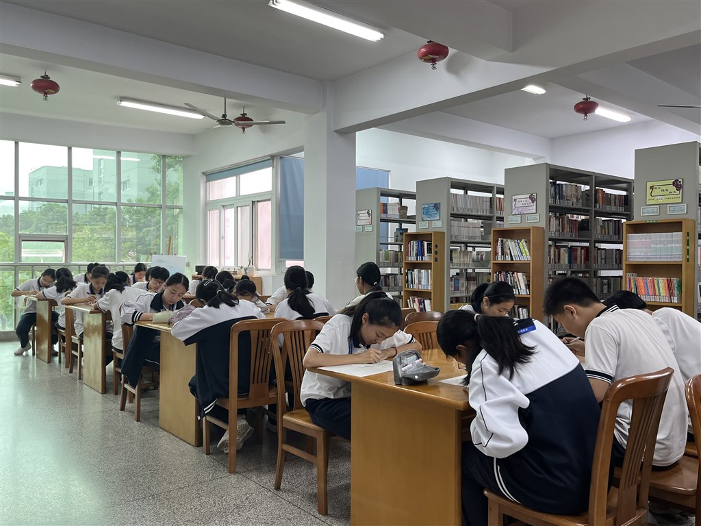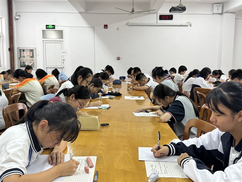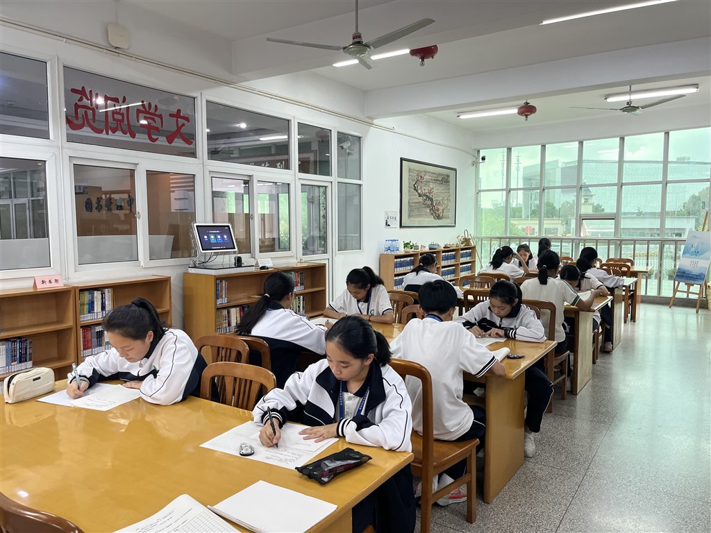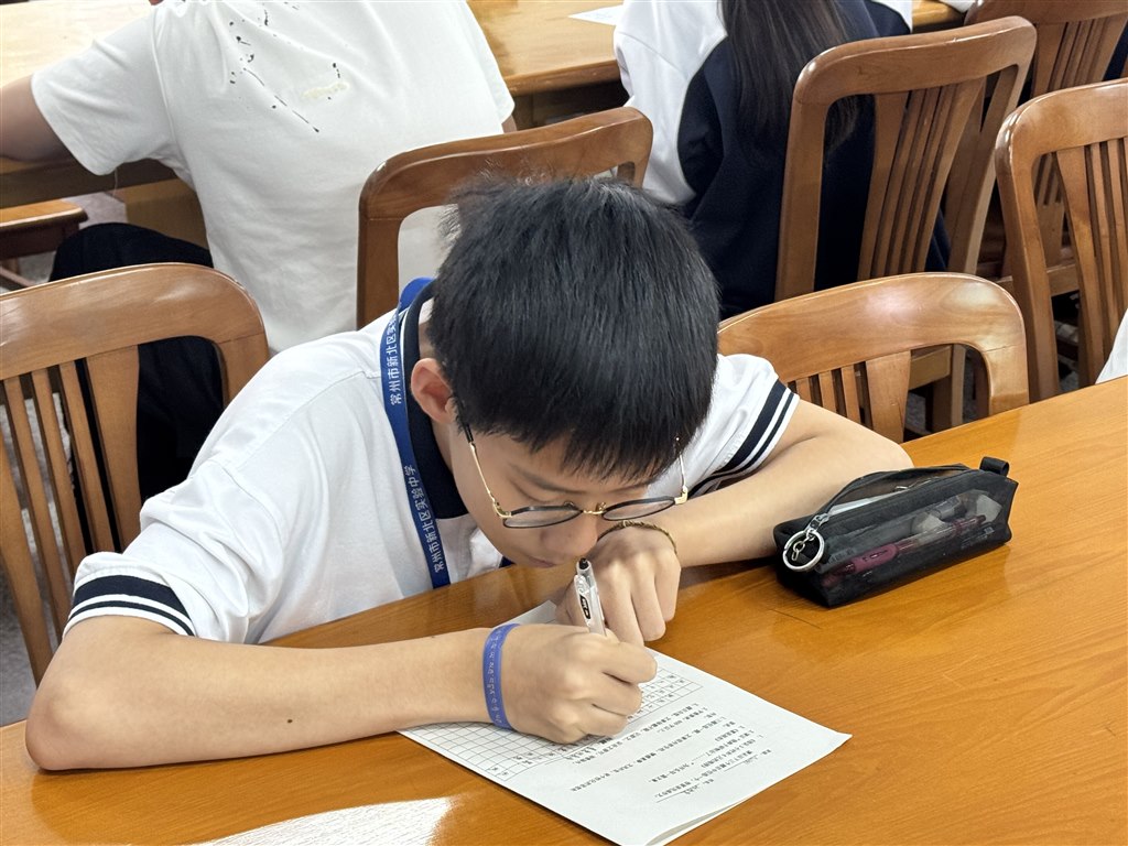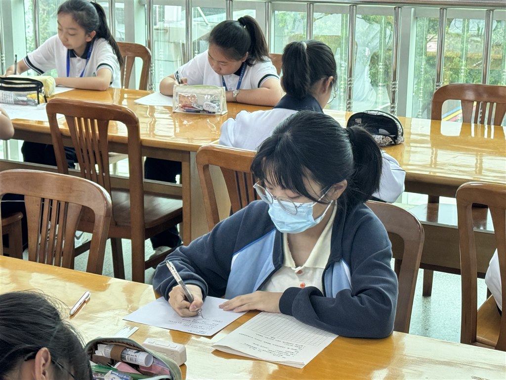 比赛现场,同学们专注的神情成为最动人的风景。有的低头沉思,在脑海中梳理写作脉络;有的提笔疾书,让灵感随着笔尖流淌;有的偶尔停顿,字句斟酌打磨表达。笔尖与纸张摩擦的“沙沙”声,交织成一首充满朝气的乐章,每一个字符都承载着同学们的思考与创造。