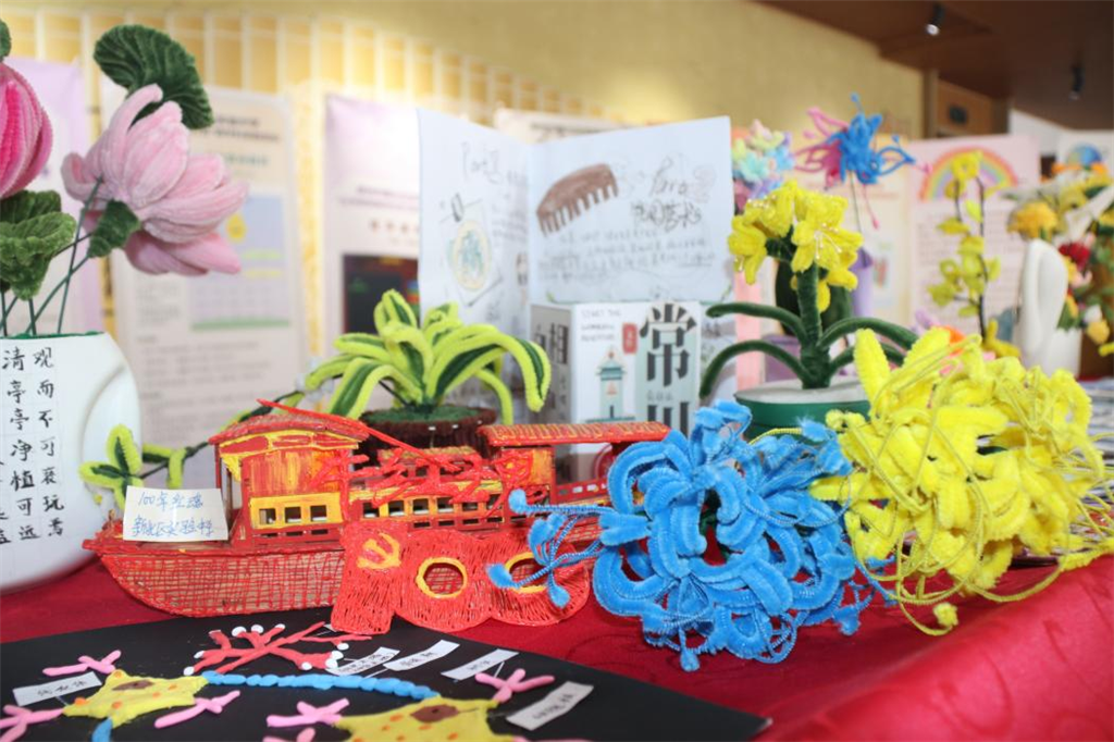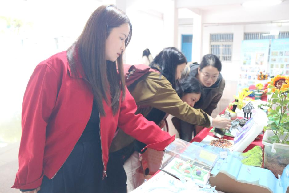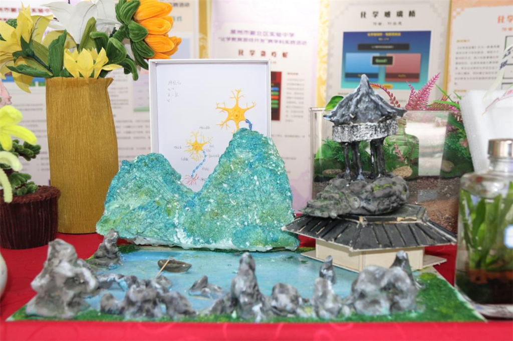 常州市新北区实验中学展示了各学科的实践作业。道法组以“挖掘常州文化根脉”为主题实践,走进历史街巷,探访非遗传承,学生设计了常州文化手册。地理组通过手绘地图训练空间精准表达,地形模型构建立体感知,雨水花园与民居制作则融合生态智慧与家园情怀。生物组通过生态瓶的制作,培育学生的稳态与平衡观;细胞模型制作则是对生命精密结构的具象探索。化学组展示了学生将化学知识与前沿的生成式人工智能技术深度融合,成功开发的一些化学教育游戏……