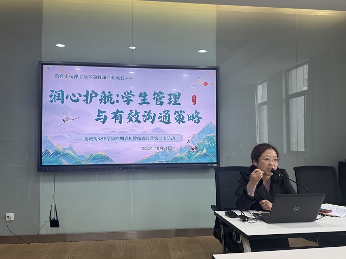 为助力青年教师关注学生心理健康、提升沟通能力,10月21日,龙城初级中学青年教师成长营迎来第四期第二次活动。本次主题为“润心护航:学生管理与有效沟通策略”,由教师发展处副主任盛莉莉主持,三位优秀教师依次登台,分享了他们在育人实践中的智慧与温度。