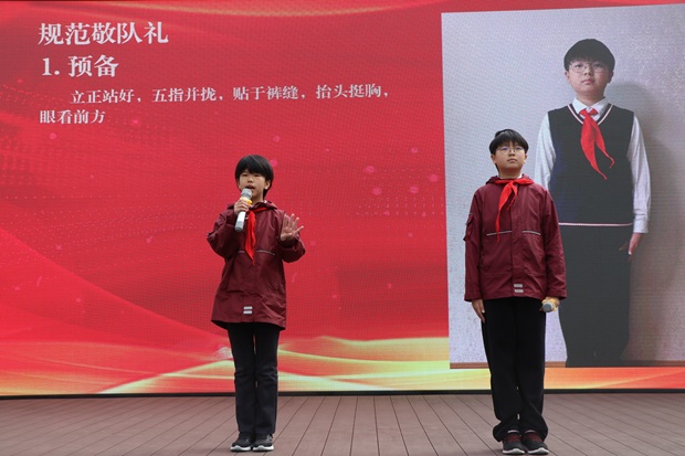 仪式尾声,主持人在总结中发出倡议:愿全体同学从规范每一次队礼、系好每一条红领巾做起,恪守仪式之礼;从一句真诚问候、一次友善交谈起步,践行言谈之礼,让礼仪之花绽放在校园的每个角落。