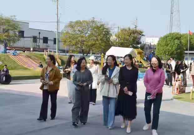 在徐志娟园长的陪同下,名园长工作室成员先后观摩了园所环境、户外混龄游戏。通过走动式观摩,见证了不同年龄段幼儿在全场景户外大课堂中肆意释放的无限活力。成员们频频点赞,纷纷举起手机、相机捕捉亮点,记录美好瞬间。