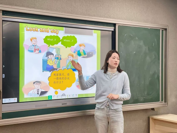 评课环节中,教师们围绕两节课的对比展开深入研讨。五年级组代表指出,徐老师的问题设计具有明显的层次性,从基础句型操练到开放性职业讨论,有效培养了学生的逻辑思维能力;而薛老师的课堂则暴露出任务设计深度不足、教师指导缺位等问题。每位老师在总结点评中发现,教师要注重"从陈述到疑问"的句式转换训练,提升学生的语言生成能力;同时应加强语调教学,形成发音规律。此外,还需要特别注意的是,小组合作的成功实施需要教师具备更强的课堂驾驭能力和教学设计能力。