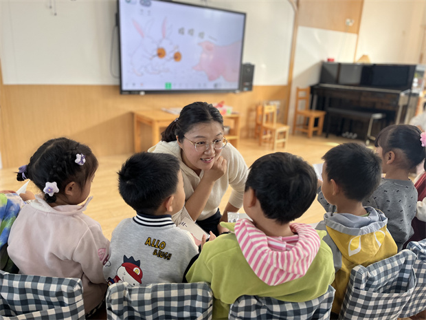 随后,圩塘中心幼儿园的黄英老师执教了一节小班语言活动《怎样叫醒胖小猪》。课堂上,色彩明快的绘本画面点燃幼儿学习的兴趣,多感官的互动环节,既满足集体学习需求,更精准搭建起面向特需幼儿的“阶梯式支持脚手架”。教学展示结束后,全体教师围绕“特需幼儿课堂支持策略”展开热烈研讨,结合课堂观察各抒己见,从“互动形式多元化、同伴互助自然化、资源捕捉精准化”等角度分享交流实践感悟。