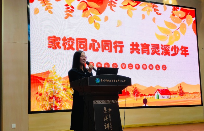 刘四青校长以《从“心”开始 共育“灵溪少年”》为主题,从优美的校园环境、多彩的校园生活、学校的持续发展三方面与家长们进行分享交流。同时刘校也真诚地感谢家长们长期以来的支持,并承诺学校将持续优化教育服务,与家庭形成教育合力。