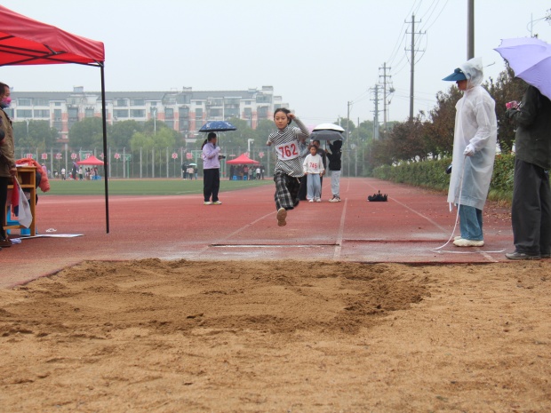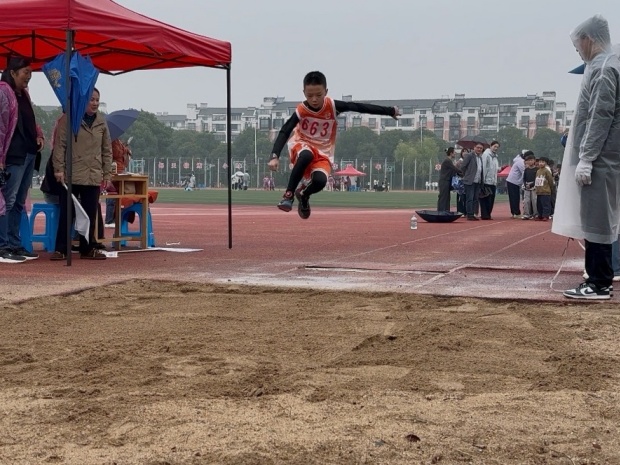 跳高赛场,横杆不断升高,挑战升级。运动员们助跑、起跳、过杆,动作轻盈如飞燕。即便碰落横杆,他们也迅速调整状态,重拾信心,再次拼搏。跳远沙坑旁,运动员们急促助跑后舒展起跳,落地细沙记录着每一次超越,每一次跳跃都是他们对极限的挑战,藏着他们成长的惊喜。