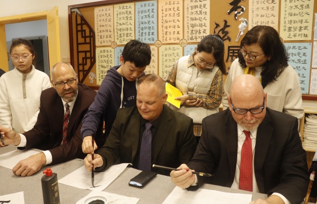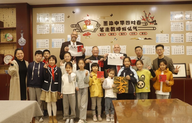 11月4日下午,美国威斯康星州威廉姆斯湾教育局4人代表团到访常州市龙城小学,开启“山海牵线,校际相逢”主题交流,新北区教育局副局长蒋辉与龙城小学领导班子全程陪同。