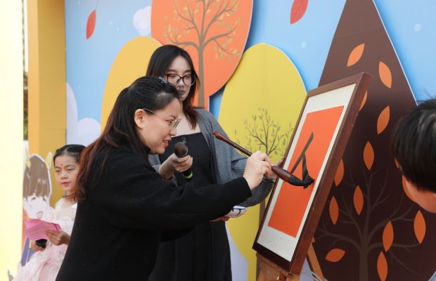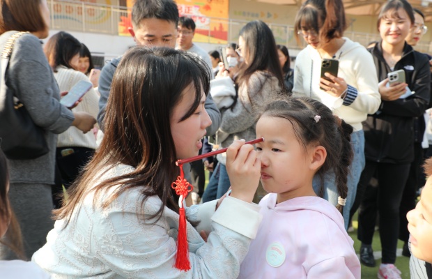 家长们牵着孩子的手,缓缓走过精心布置的入学门,篮球场旁12个亲子互动区域早已就绪,亲子贴画等趣味活动,让孩子们在欢声笑语中“接住”大自然的浪漫,感受亲情与校园的双重温暖。随后,在老师的引导下,孩子们与家长分列整齐队列,跟着示范认真整理衣冠。一句句叮嘱、一个个规范的动作,让“明事理、守礼仪”的种子在心中生根发芽。周亚军校长的致辞满含期许,为孩子们送上成长祝福与殷切嘱托;家长代表的发言真挚动人,传递着对学校的信任与对孩子的美好期盼,短短3分钟的话语里,是家校共育的同心同向。班主任老师手持朱砂笔,轻轻在孩子们的额头点下红痣,这一传统仪式寓意 “开天眼、启智慧”,愿小龙娃们从此眼明心亮,好学善思。接着,五年级的12名学长代表,郑重地将班牌与成长护照交到一年级班主任和学生代表手中。小小的护照承载着校园生活的点滴记忆,班牌则象征着集体的归属感与责任感。最后,孩子们在家长的陪伴下,手握毛笔认真书写“人”字。一撇一捺间,是对做人道理的初认知;写完“人”字后,孩子们走向班级后方的大鼓,奋力敲击,鼓声阵阵,是他们对未来的庄严宣告与美好憧憬。