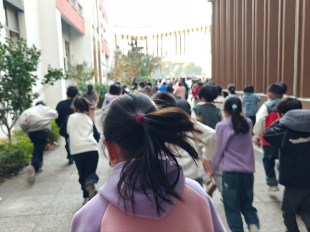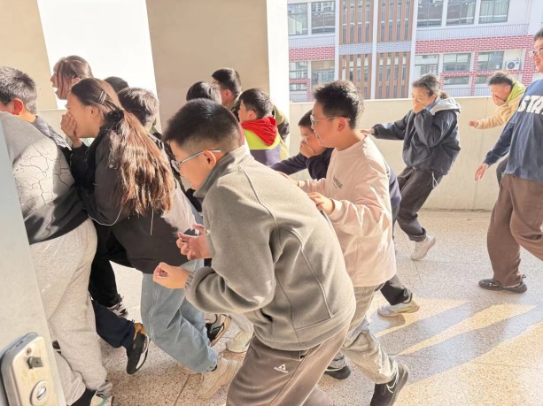 演练中,学校广播系统发出疏散信号,各班正副班主任立即组织学生,按照预定路线弯腰低姿、捂住口鼻快速撤离。各楼层的学生们分别从东西楼梯有序下楼,避开拥挤路段,通过操场南北路口前往升旗仪式指定集合点。期间,楼层值守教师在楼梯口、走廊转角等关键位置引导分流,防止碰撞拥挤;体育老师和门卫师傅则记录各班撤离时间,保障演练数据完整。