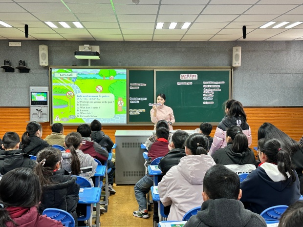 施文亚老师执教六年级上册Unit 5《Signs》绘本融合写作课。她以视频创设情境,引入标识话题,学生借助图片交流讨论,复述Story time和Cartoon板块内容,结构化呈现关键句型。她组织听力训练,检验学生标识掌握情况,引导学生观察归纳出标识的三种类型,促进学生思维品质发展。通过阅读绘本封面,学生运用核心句型谈论标识,在问答中深化语言理解。随后,学生快读了解新标识,细读理解故事内容,思考标识重要性;并通过填词练习促进知识内化,提升语用能力。最后,她引导学生为公共场所设计标识并用英语交流,为语言输出做好充分准备,随后联系生活实际,创造性撰写新标识介绍语,巩固语言结构的同时培养学生社会公德意识。