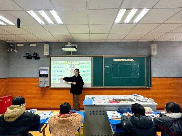屈雅妮老师执教五年级上册Unit 5《What do they do?》绘本融合写作课。她以歌曲创设职业话题情境,引导学生总结梳理职业类词汇,整合单元核心句型,运用目标语言谈论父母职业。通过回收课前任务单,检测学生对绘本的初步理解,并以主人公Alina为线索贯穿全课。在快速浏览与细节精读中,学生逐步感知绘本内容,阐释文本细节,深入思考核心问题,在互动中体会人物情绪变化。她以批判性提问推动小组讨论,学生对Alina父母的职业展开评价,实现语言知识向真实生活的迁移。最后,她引导学生内化语言知识,总结描写职业的维度,搭建语言框架,为学生形成书面表达奠定基础,提升学生英语核心素养。