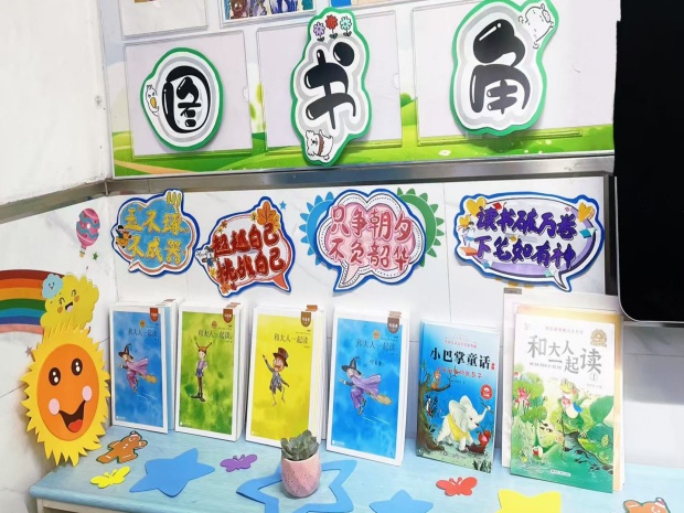 “拼音王国”将抽象的字母化作生动的图案,让孩子们在游戏中轻松学习;“妙笔生花”作品墙展示着孩子们的奇思妙想,记录他们从稚嫩到进步的足迹;温馨的“书吧”则用丰富的绘本吸引着小读者,让阅读成为美好的享受。